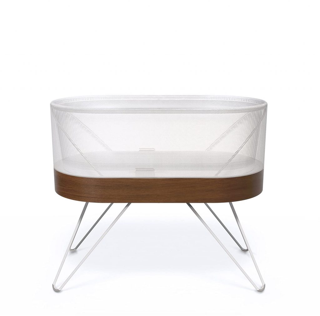 If you are looking for a bassinet that fits your retro mid-century home decor, this is a good pick. The bassinet is said to improve your baby’s sleep thanks to its motion. It is made with technology that detects your baby’s cries and automatically increases or decreases the white noise or motion output. There is also the additional app that allows you to control white noise and vibrations from your mobile phone.